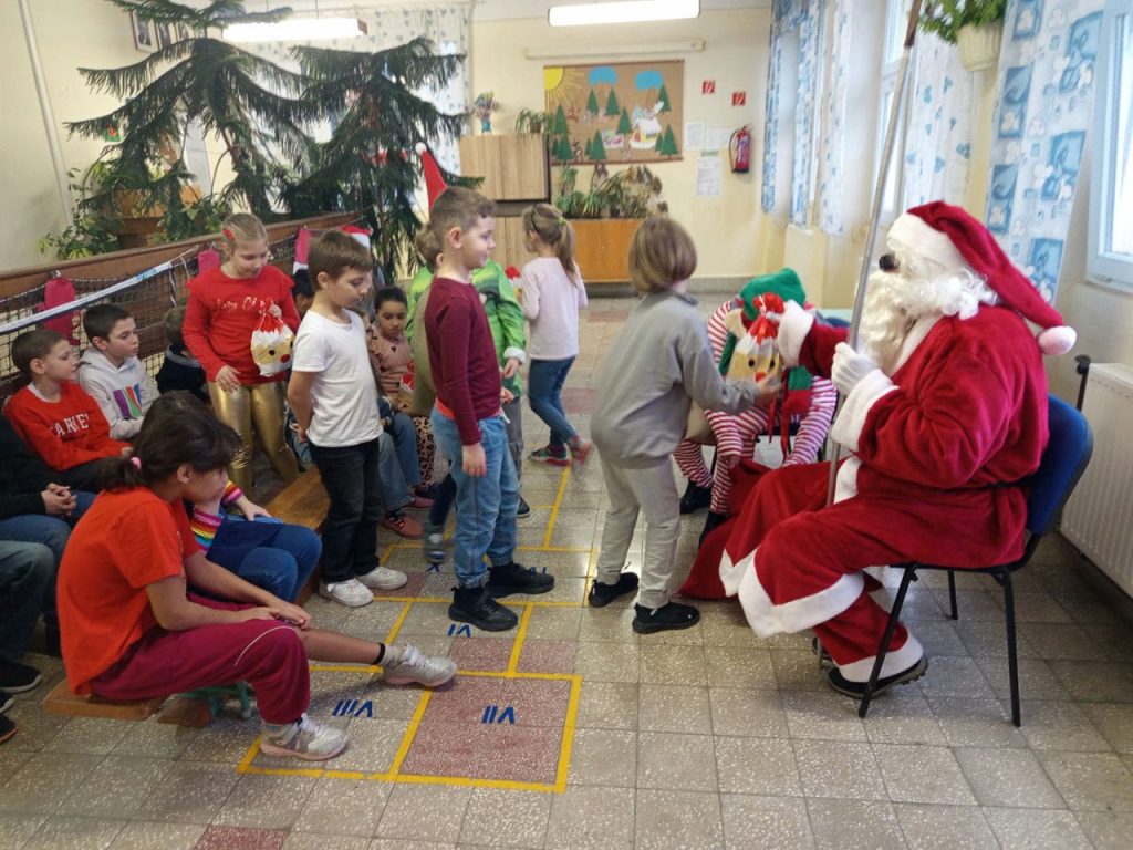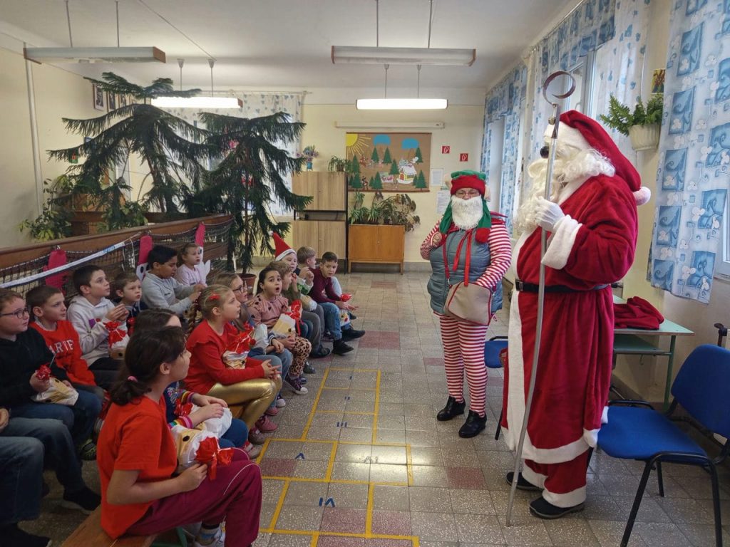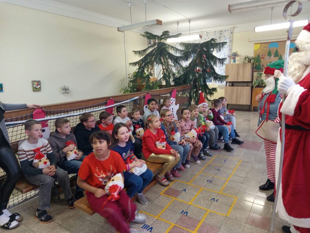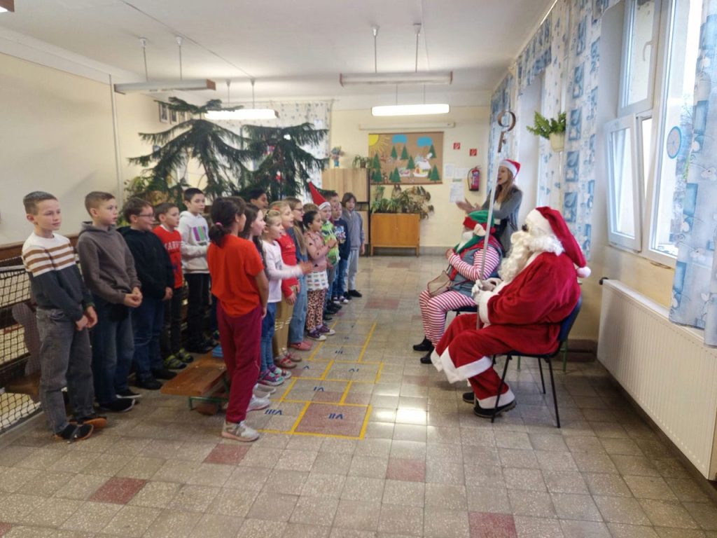 December elején az iskolai folyosót ismét gyermeki izgalom töltötte meg, hiszen ellátogatott hozzánk a Mikulás és segítője. Az alsós osztályok közösen várták a nagyszakállú érkezését.