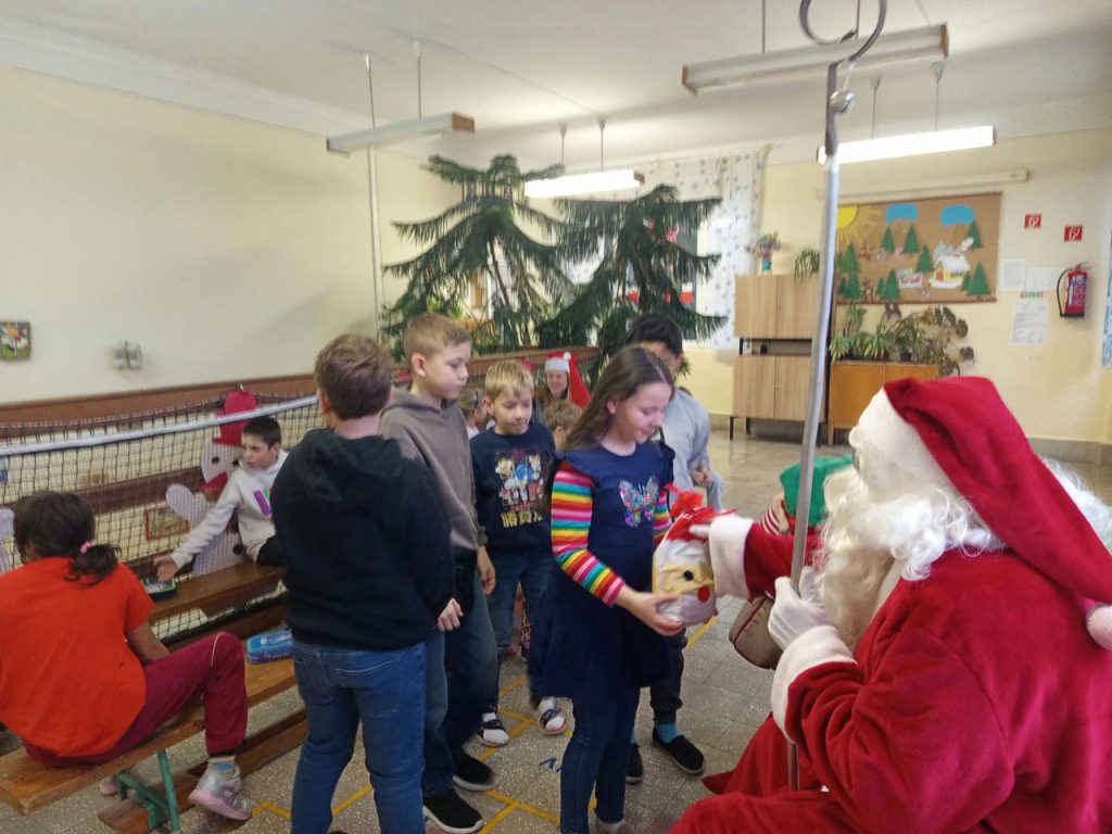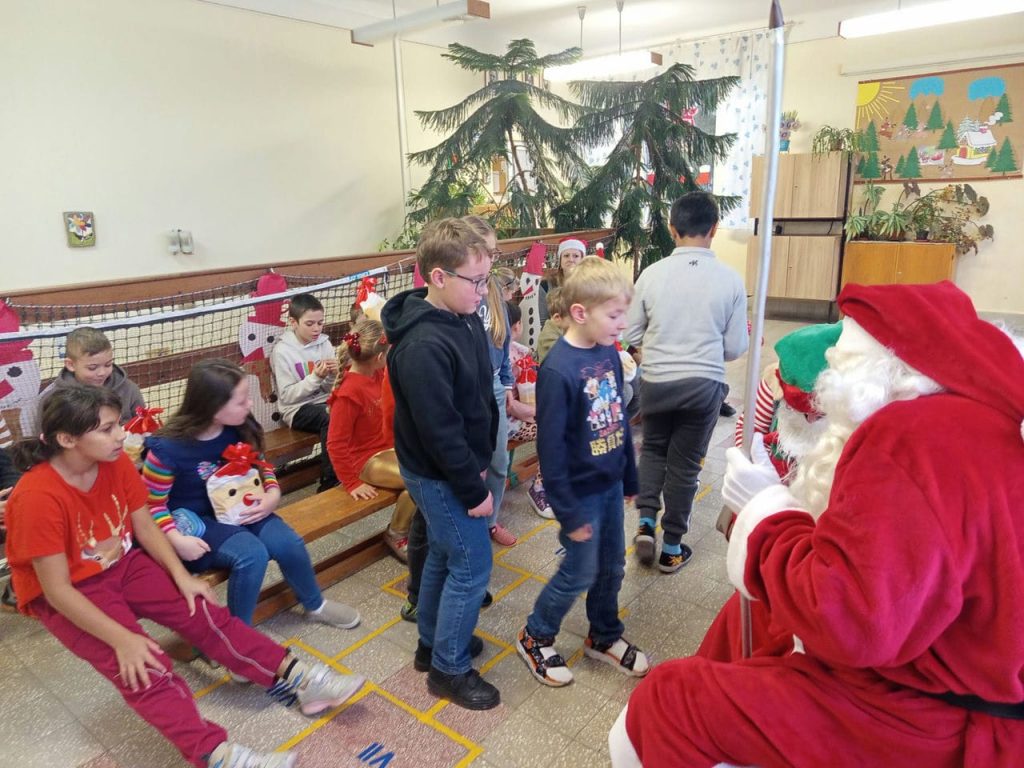 A diákok versekkel és dalokkal készültek, melyeket bátran adtak elő a vendégnek . A Mikulás minden gyermeket személyre szóló dicsérettel és egy-egy gazdag csomaggal ajándékozott meg.