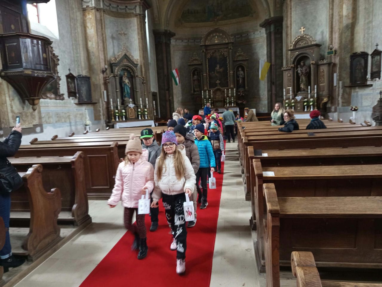 Az ünnep fénypontja a templomi felvonulás volt, ahol a gyerekek lámpásaikkal a kézben vonultak be a padsorok közé . A meghitt félhomályban felcsendülő dalok és a közös éneklés varázslatos atmoszférát teremtett.